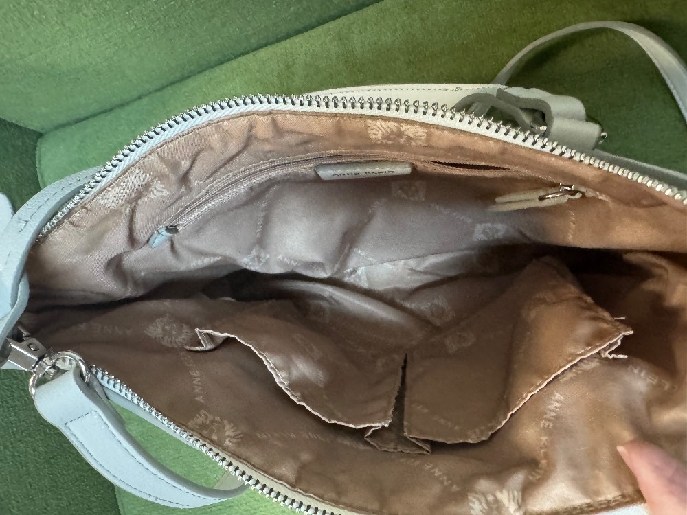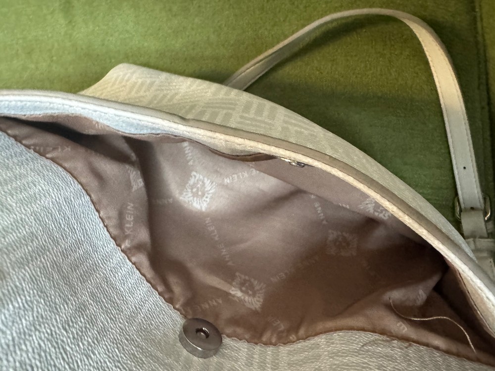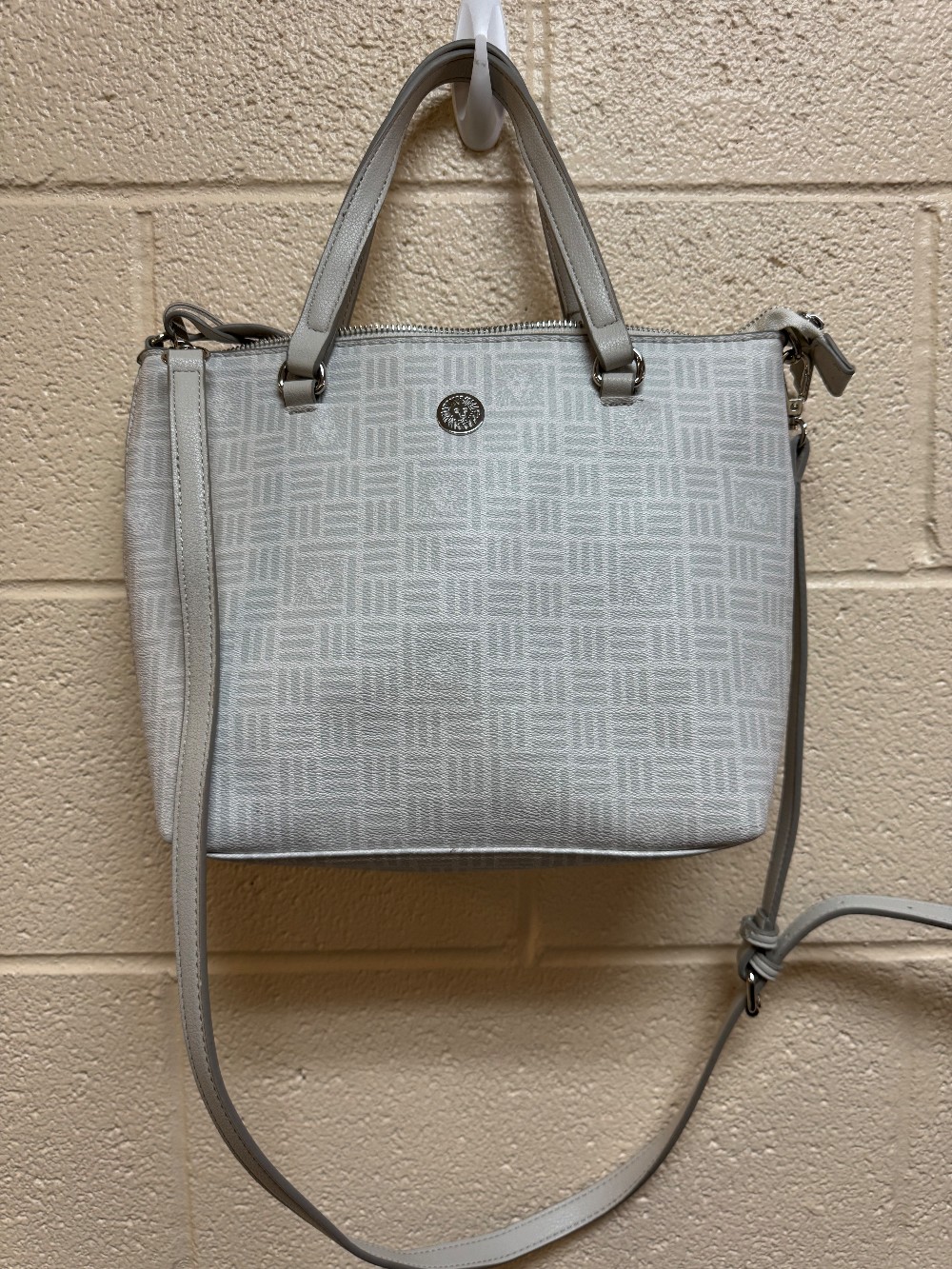 White gray shoulder bag w/ attached card holder