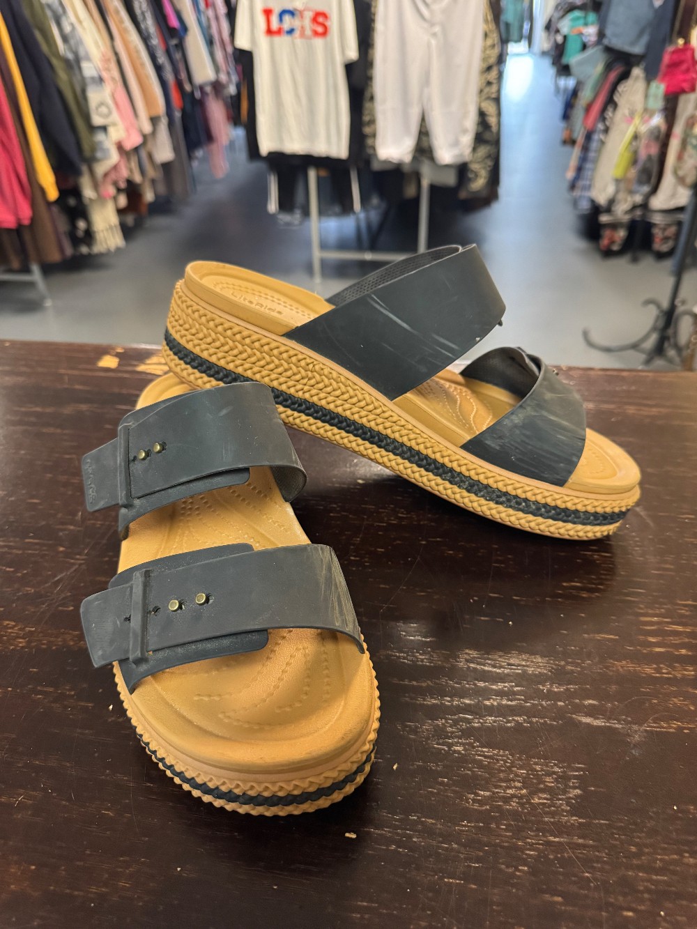 Black and tan Brooklyn wedge sandals